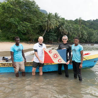 Collaborating with of two local NGOs, Marapa and Fundacao Principe, Hughes and his teams identifies and tags whale sharks to track their migration. A consortium with the Cape Verde Islands and Gabon has been created to enhance their influence in discussions with international bodies. They are supported by the Blue Marine Foundation (UK), Fondation de la Mer (France), and Fondation du Vent des Globes (France), as well as Shark Project (Switzerland).